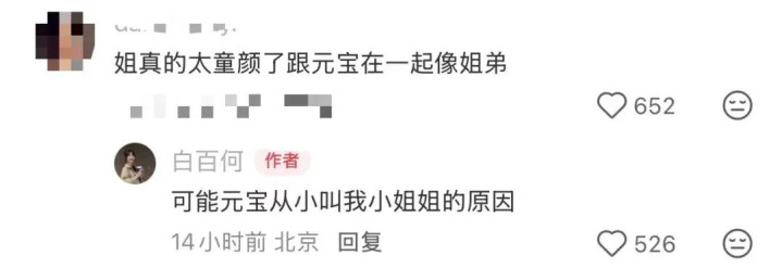 这是白百何首次晒正脸照,照片中母子二人做了同款美甲,互动自然俏皮,网友评论两人“好像姐弟”,白百何幽默回复:“可能元宝从小叫我小姐姐的原因。”